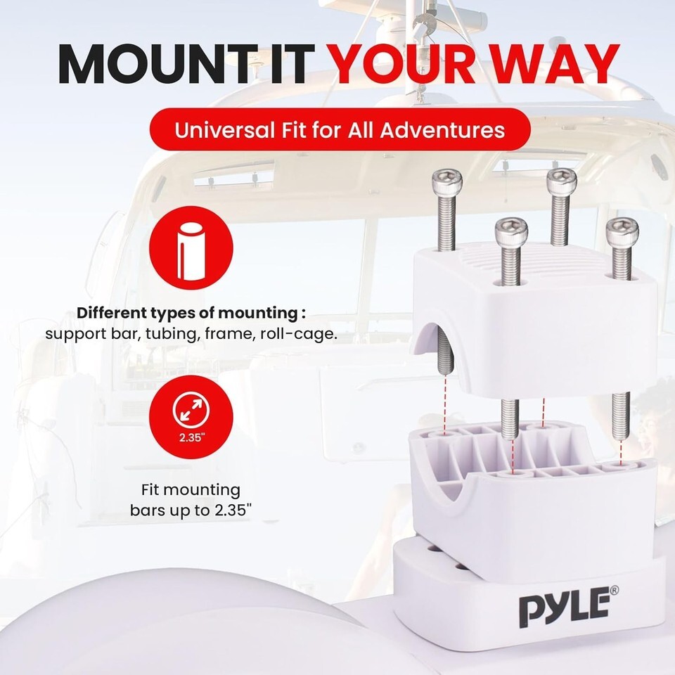 * 200-WATT POWER: The dual compact marine wakeboard speakers feature a 200-watt per pair output or 100 watts each speaker. It has an impedance of 4 ohm and boasts with impressive bass response and large diameter sound projection