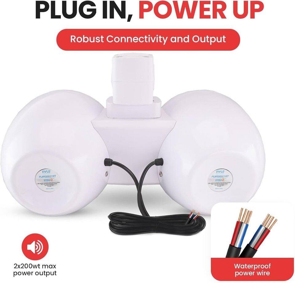 - Certified Open Box Pyle PLMRWK61WT 6.5" 200W 2-Way Marine Dual Waterproof Of...