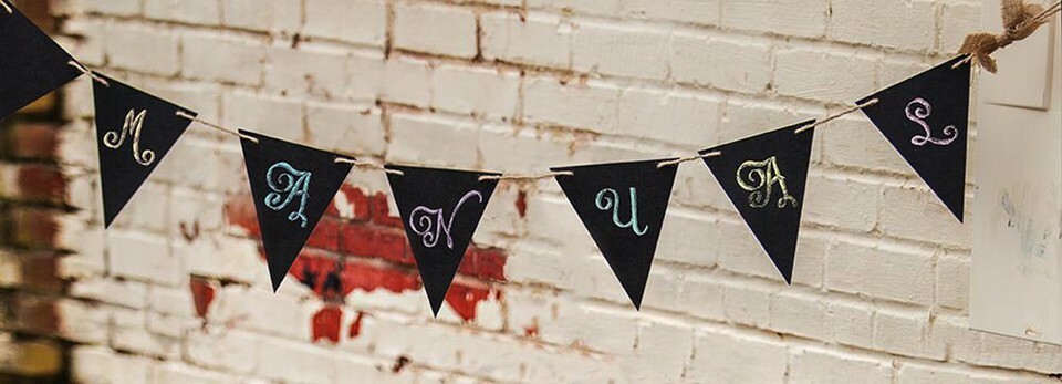 Pennant shaped chalk board garland. Leave your message on these hanging