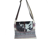 Challenger women's handbag made from upcycled canvas and full-grain leather. Shoulder bag is uniquely accented with a beautiful multicolored design. This practical, lightweight, and conveniently sized roomy bag is made sturdy to endure everyday use. Perfect choice for school, work, travel, or weekend trips. Main compartment has a full zipper closure with a wide opening to easily access your belongings. The fully lined interior also features a side zippered pocket, and two open pockets for additional storage. The backside also has a zippered pocket to store easily reachable items. The antique finish brass hardware beautifully ties the bag together. Bag measures 12.5" L x 9.5" H providing plenty of room for all of your everyday essentials.