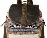 Challenger backpack made from upcycled canvas and full-grain distressed leather accents. Beautifully accented with a navy patterned design. This practical, lightweight, and conveniently sized backpack is made sturdy to endure everyday use. Perfect choice for school, work, or travel. Main compartment has a button and full zipper closure. The fully lined interior also features a large open pocket for additional storage. There's also two smaller zippered side pockets for storing easily reachable items. The antique finish brass hardware beautifully ties the bag together. Bag measures 13" L x 12" H providing plenty of room for all of your everyday essentials.