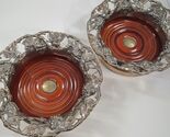 Some wear/patina/areas where silver plate has rubbed off from use as shown. See pics for details. Includes 2 coasters, see pics for measurements.