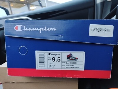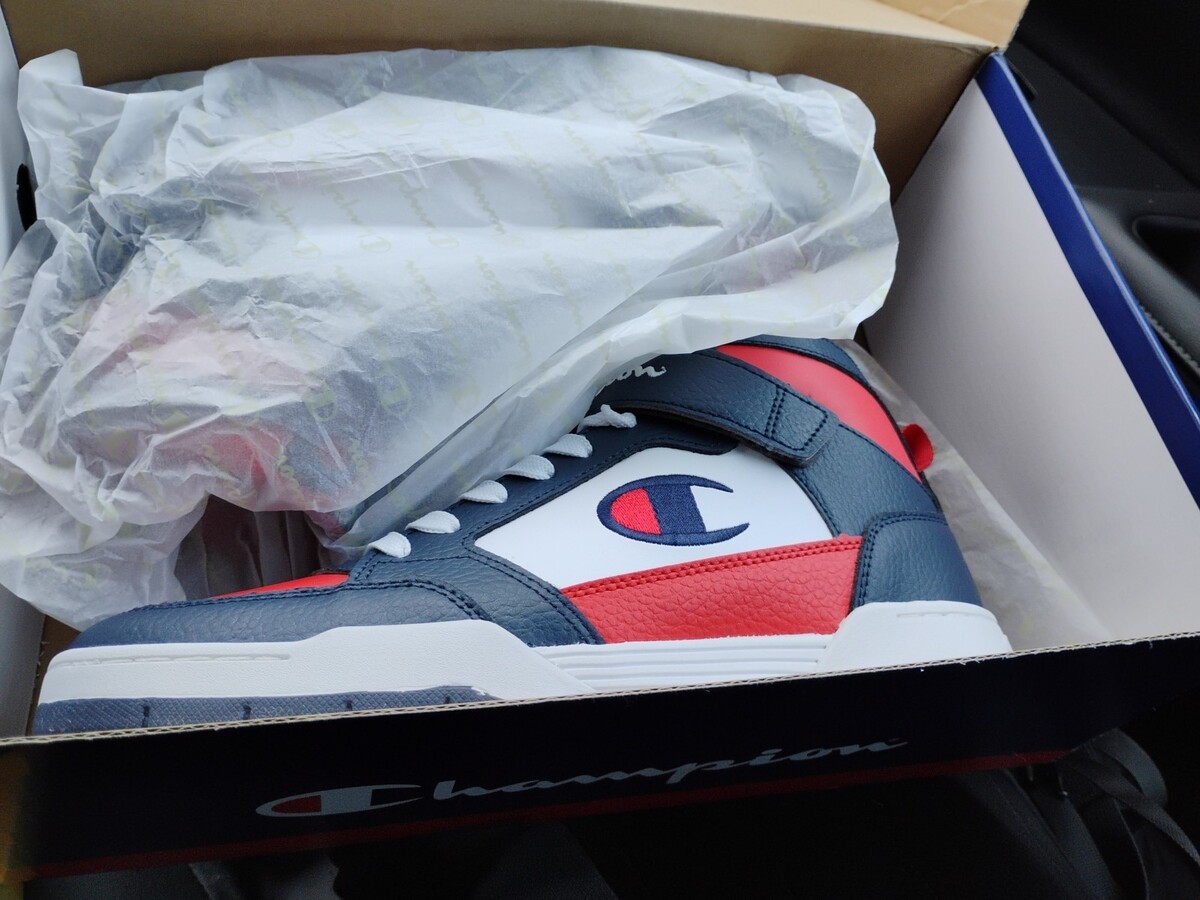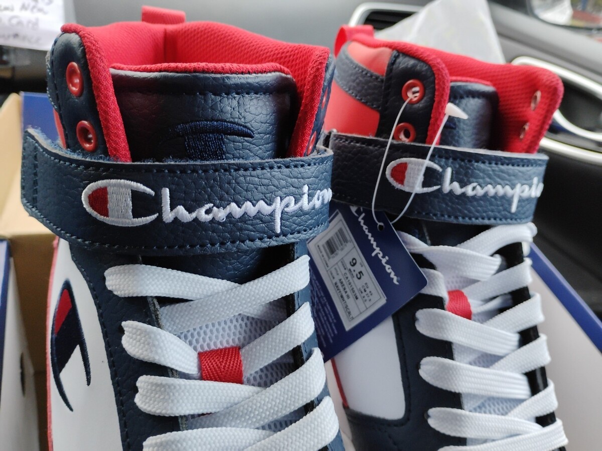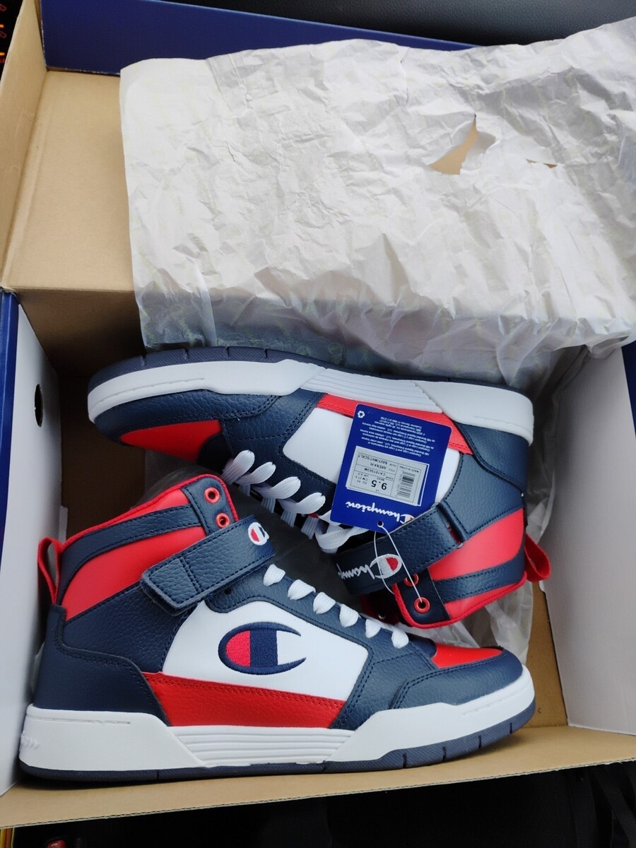 - Champion Arena Hi Men's Size 9.5 Navy/Wht/Scrlt Athletic Sneaker CA101503M