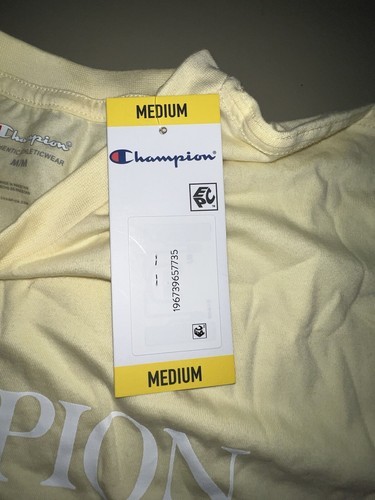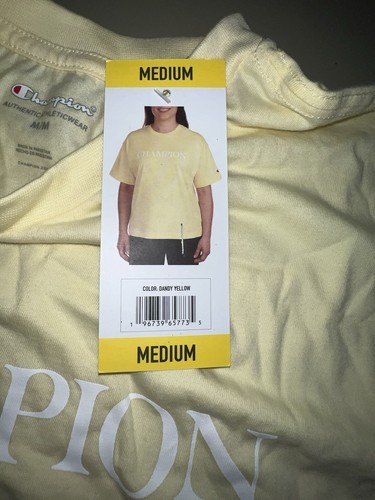 This Champion Athletic Wear T-Shirt is perfect for any active woman! The bright dandy yellow color will make you stand out while working out. The shirt is made with athletic fit and short sleeves, perfect for any type of physical activity. The brand is Champion, known for their high-quality activewear. The shirt is available in size M, perfect for regular size types. The occasion is activewear, and the shirt is perfect for any female athlete. Get this shirt and feel confident and stylish while working out!