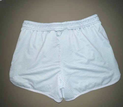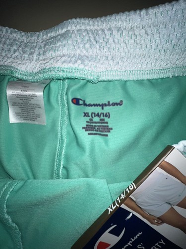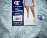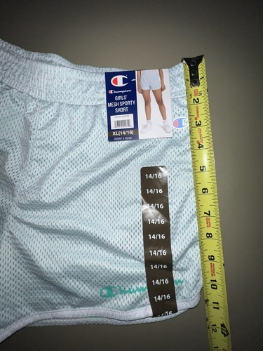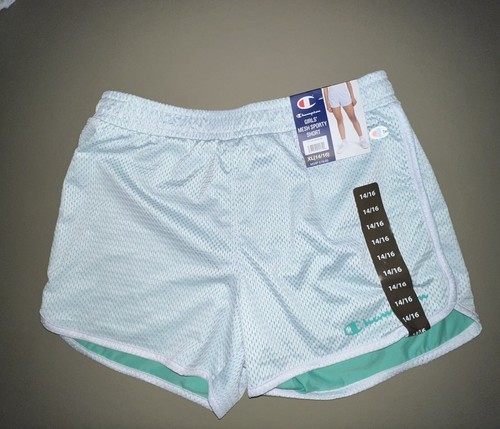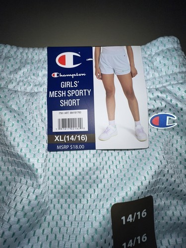 Elevate your little girl's athletic style with these Champion Girls Mesh Sporty Shorts in size XL (14/16). The bright white color is perfect for a sunny day out, and the mint green trim adds a pop of color to the athletic design. Made with breathable mesh fabric, these shorts are perfect for any active girl.