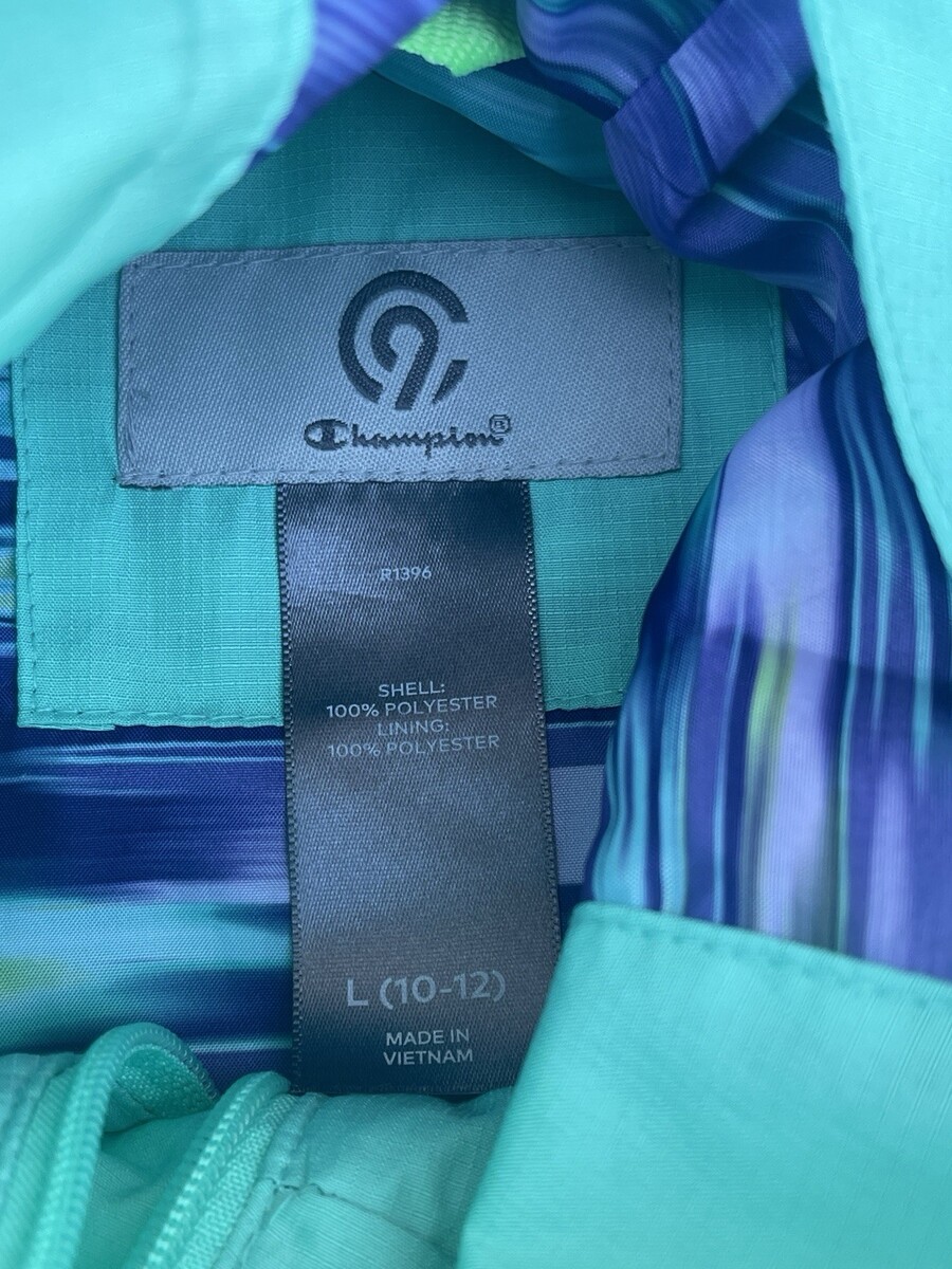 - Champion Girls Size L 10/12 Mint Green/Aqua Hooded Zip Front Jacket Rain