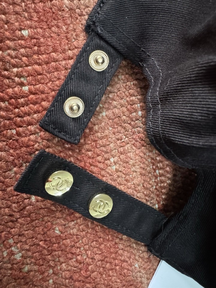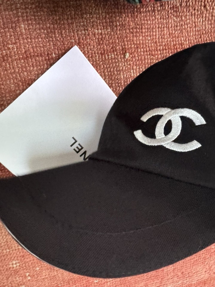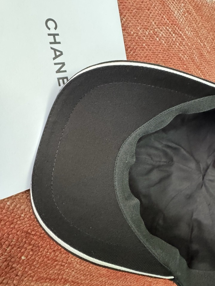 - Chanel Black White Embroidered Canvas One Size Snap Closure Hat