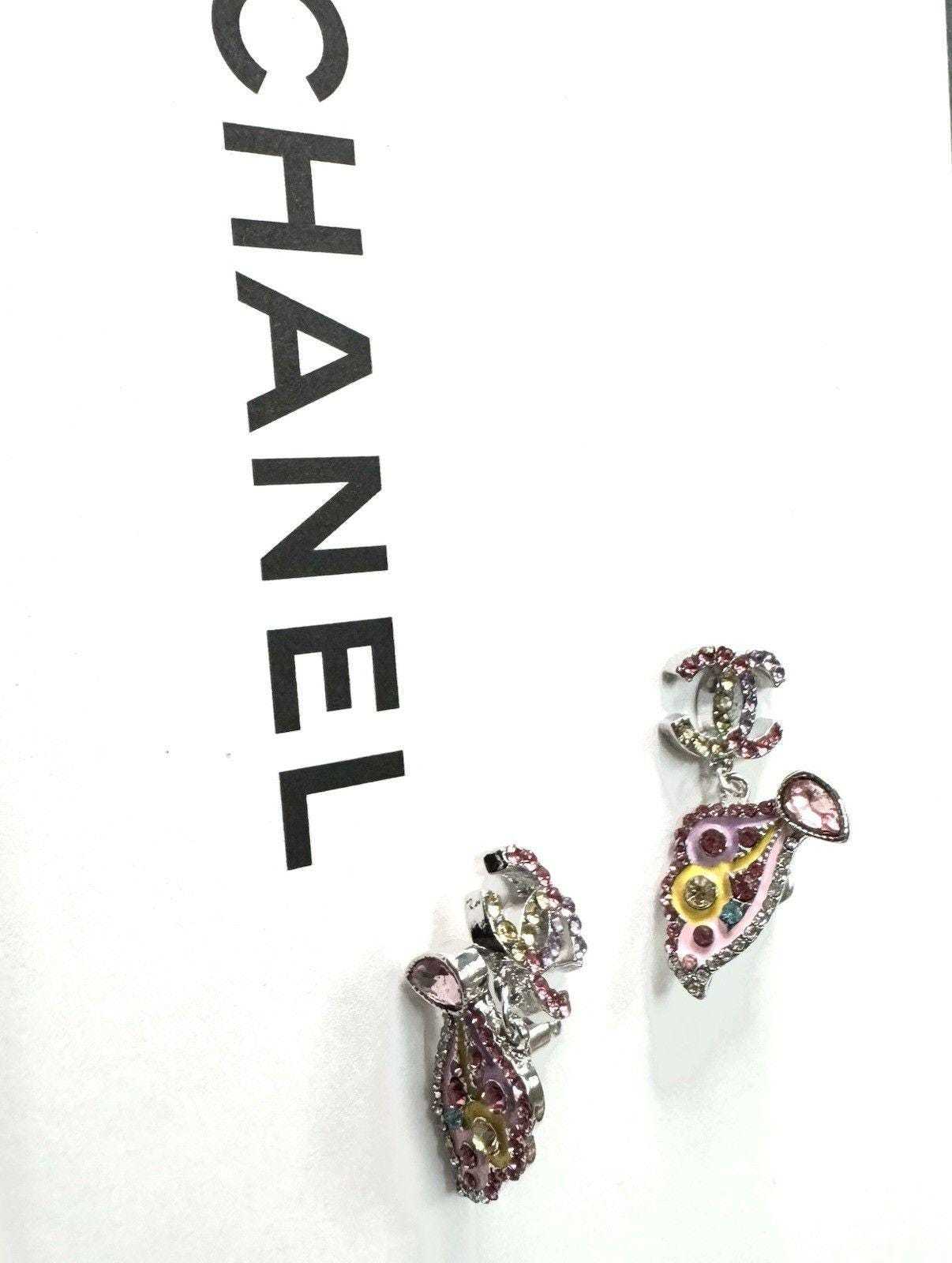 Add a whimsical pop of color to your collection with these Chanel earrings, featuring pastel-hued crystal-encrusted CC logos paired with intricately detailed butterfly wing drops.
