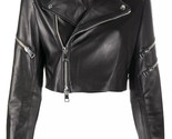 Chaqueta de cuero para mujer recortada motociclista motocicleta piel de cordero genuina negra hecha a mano \ FS