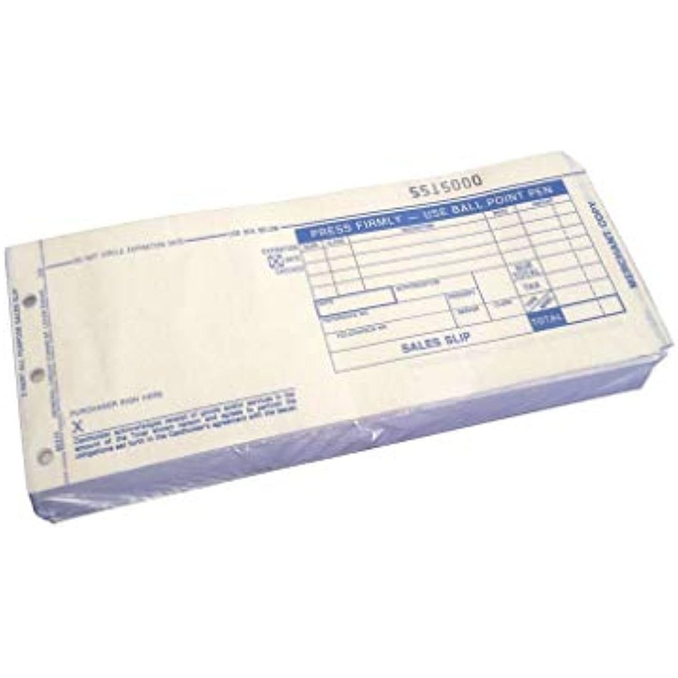 Highlights: Color : Assorted Width : 3-1/4 in. Length : 7-7/8 in. 3 part Charge card sales slip Merchant, Customer and bank copies Carbon interweaved W-Split Carbons Shrink wrapped bundle of 100 slips