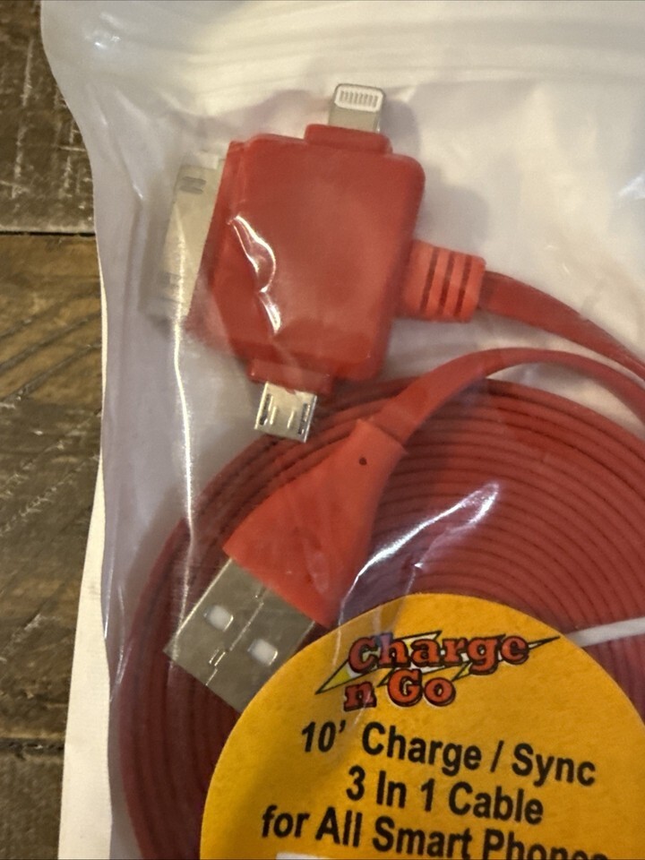 - Charge N Go 10’ Charge/Sync Cable For Smart Phones