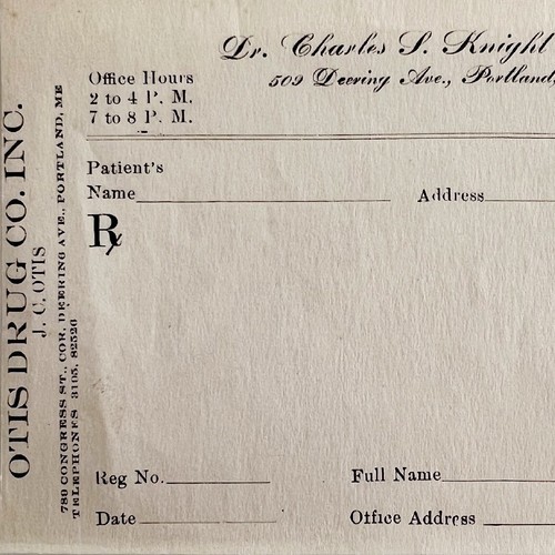 - Charles Knight Otis Drug Co Script Slip Rx Portland Maine Blank 1920s DWP4B
