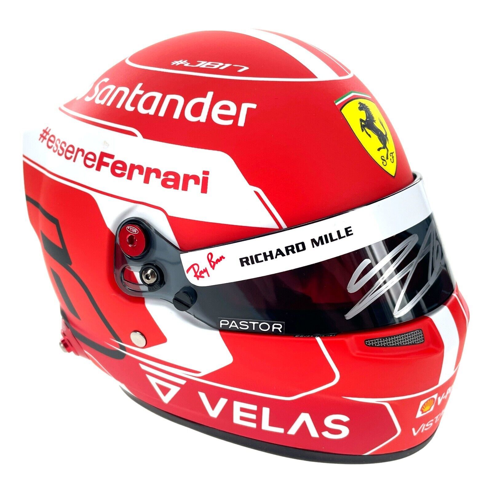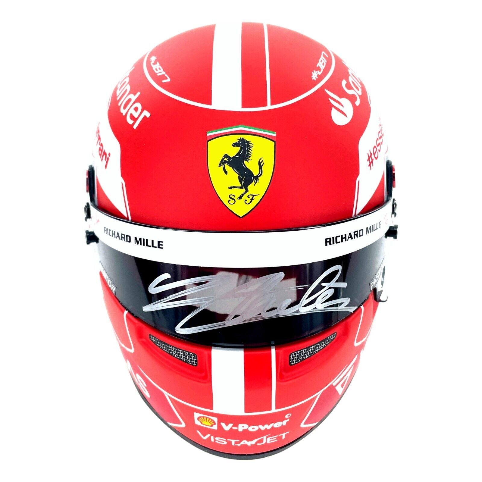 Formula One fans, this item is your calling! Check out this 1:2 Scale Ferrari Mini Helmet that features the autograph of Charles Leclerc! This item has been hand signed by him in a silver paint pen on the visor of this brand new, never displayed item! The 2022 Leclerc replica model helmet made by Bell helmets, uses high technology components, the shell, the interior and the visor are made with similar materials as the actual racing helmets used by the drivers. Item measures approximately 6.5" x 5.5" x 5.5" in size.