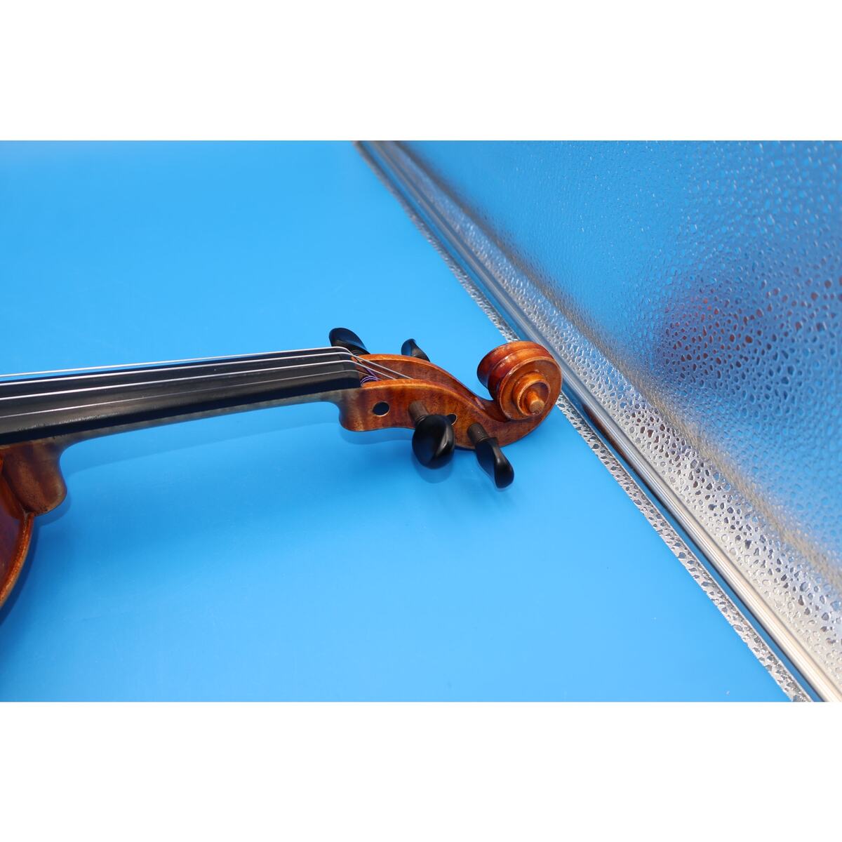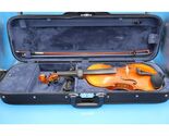 You are looking at a Charles W. Liu Stephano Laricci 4/4 Violin, Anno 2016. It is used but in good condition. It shows normal signs of use such as scuffs, scratches, and light grime around the violin, but nothing major or distracting?just average wear from everyday playing.