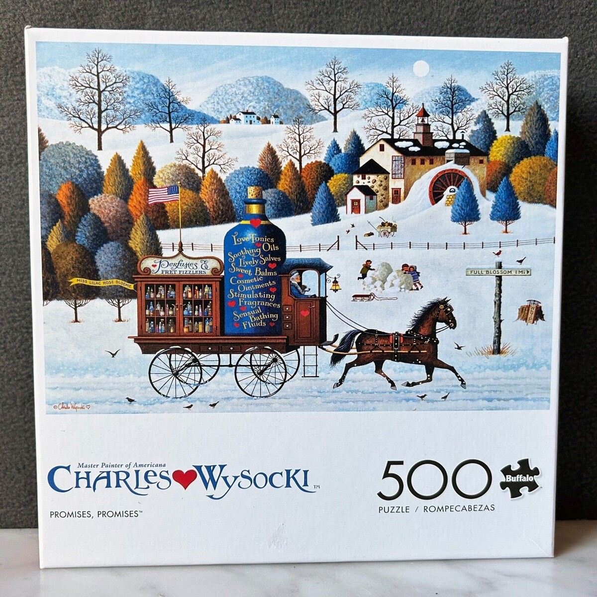 - Charles Wysocki Promises, Promises Winter Snow Scene 500 Piece Puzzle-Complete