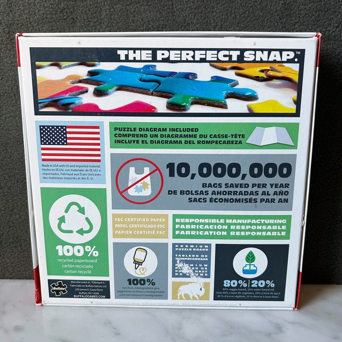 Charles Wysocki Promises, Promises jigsaw puzzle is complete and in excellent condition. Buffalo Games, 500 pieces. 21.25" x 15" (54 x 38 cm). We put puzzles together before reselling to ensure they are complete. Pieces stored in resealable bag. Please see the pictures for all the details.