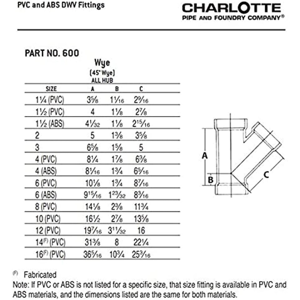 - CHARLOTTE PIPE 6 DWV WYE DWV (Drain, Waste and Vent) (1 Unit Piece)