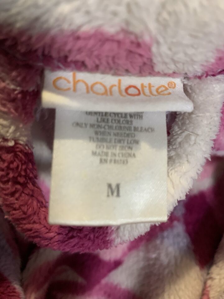 - Charlotte Plush Bath Spa Robe Wrap Belt Pockets Multicolor Fleece Flower Medium