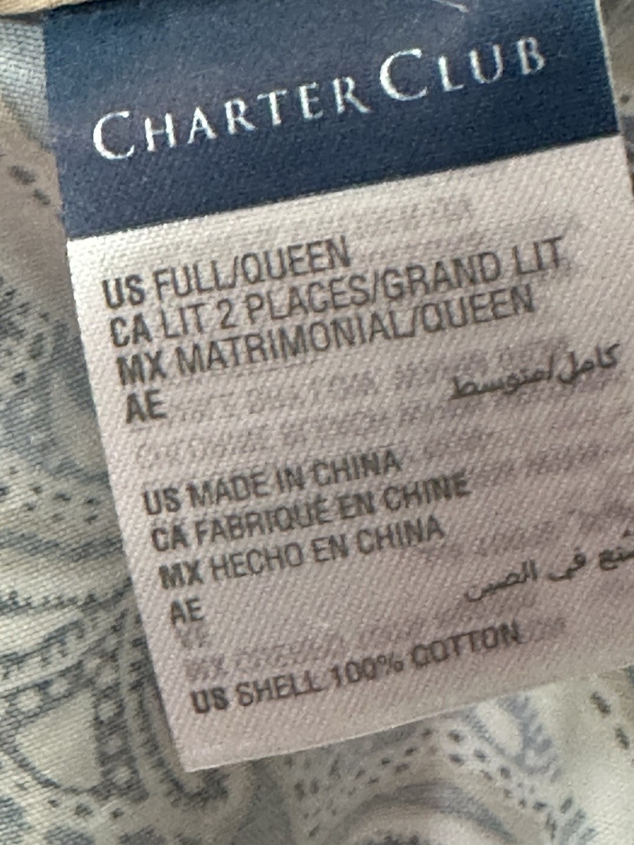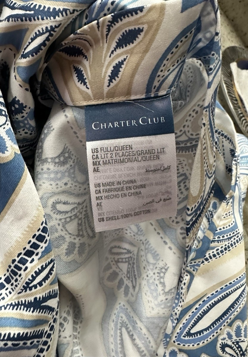 - CHARTER CLUB 8pcF/QUEEN DUVET DAMASK WHITE BLUE NAV TAN 100% COTTON BNWOP