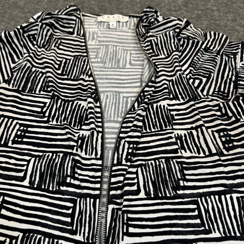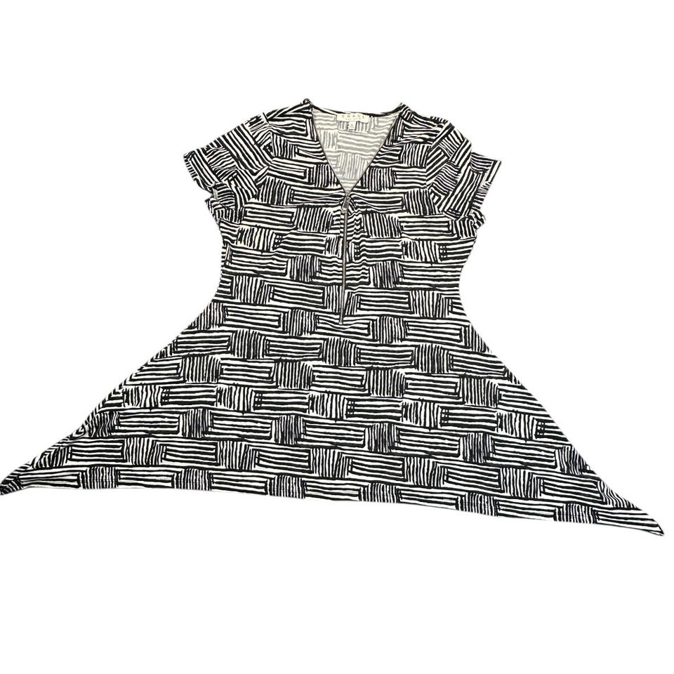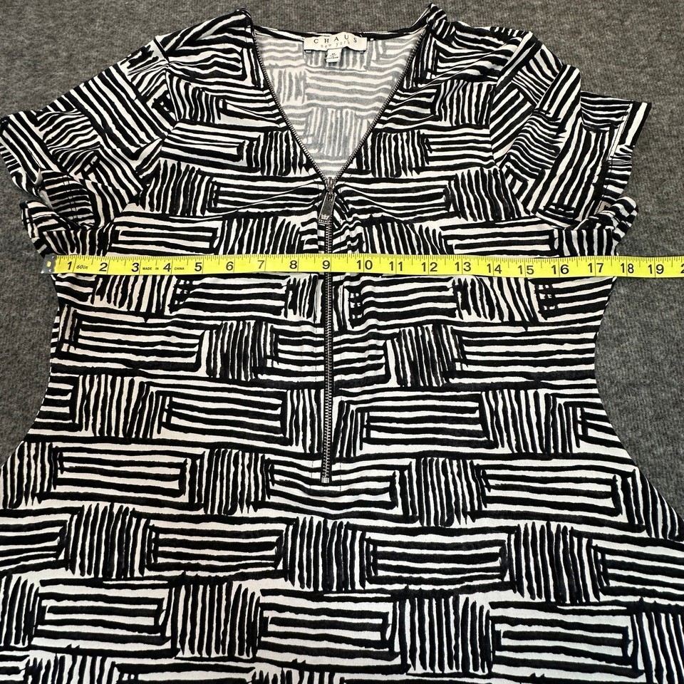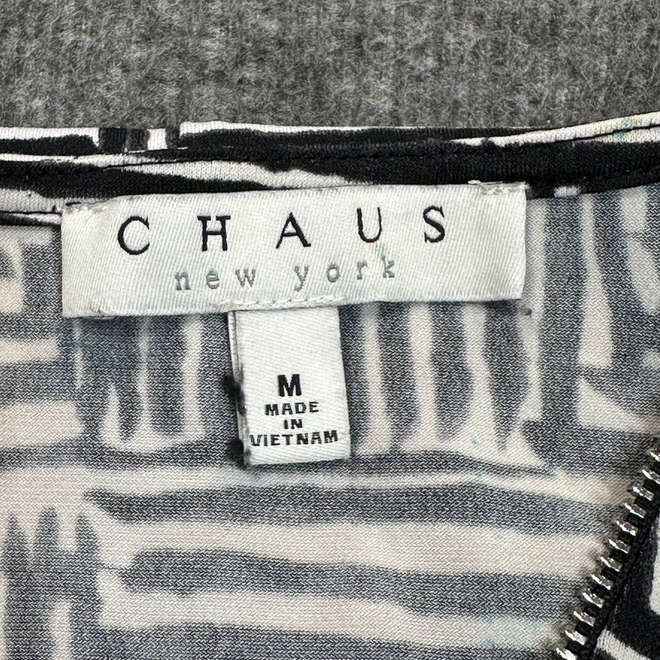 - Chaus NY Blouse Womens Medium Black White Geometric Pattern Asymmetrical Shirt