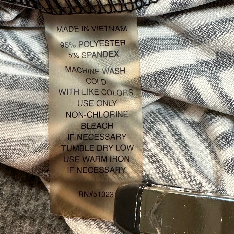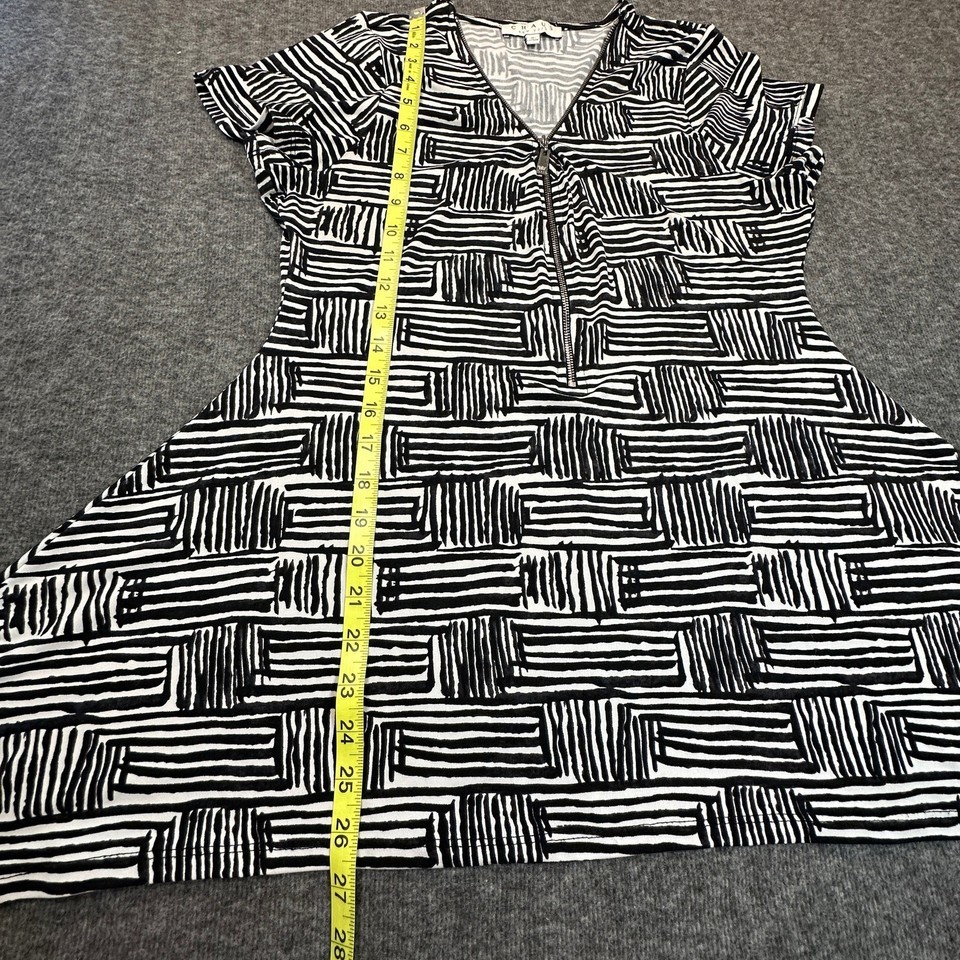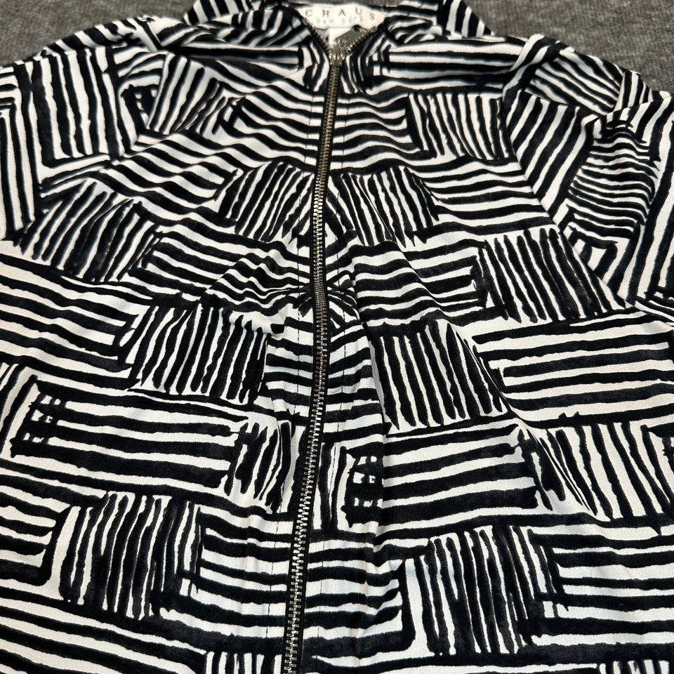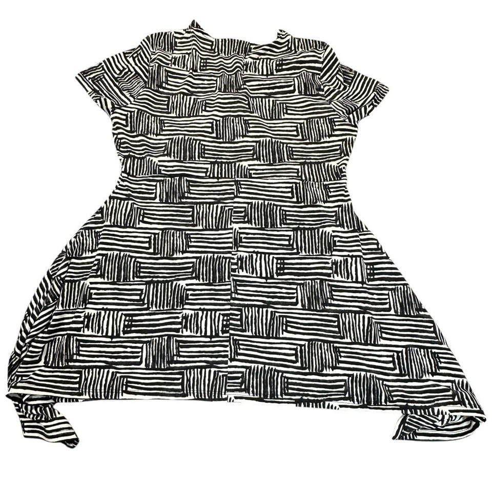 - Chaus NY Blouse Womens Medium Black White Geometric Pattern Asymmetrical Shirt