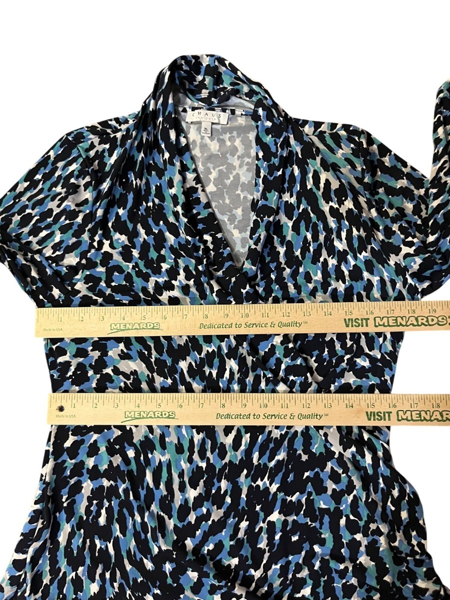 - Chaus New York Womens XL Blue Abstract Blouse Surplice Ruched 3/4 Sleeve