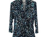 Chaus New York Womens XL Blue Abstract Blouse Surplice Ruched 3/4 Sleeve