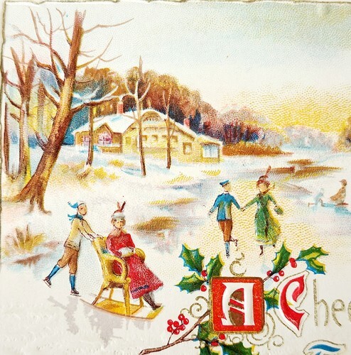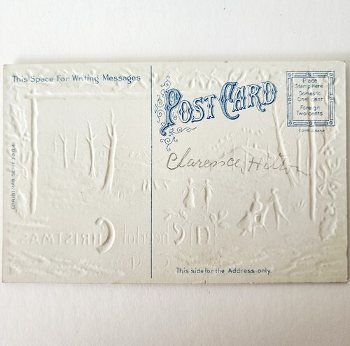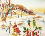 - Cheerful Christmas 1910s Greeting Postcard Embossed Ice Skating Pond PCBG6B