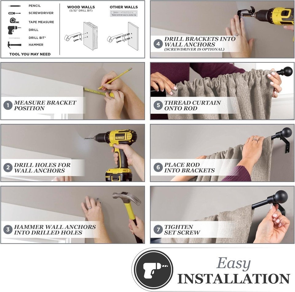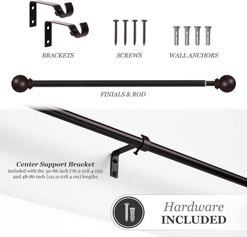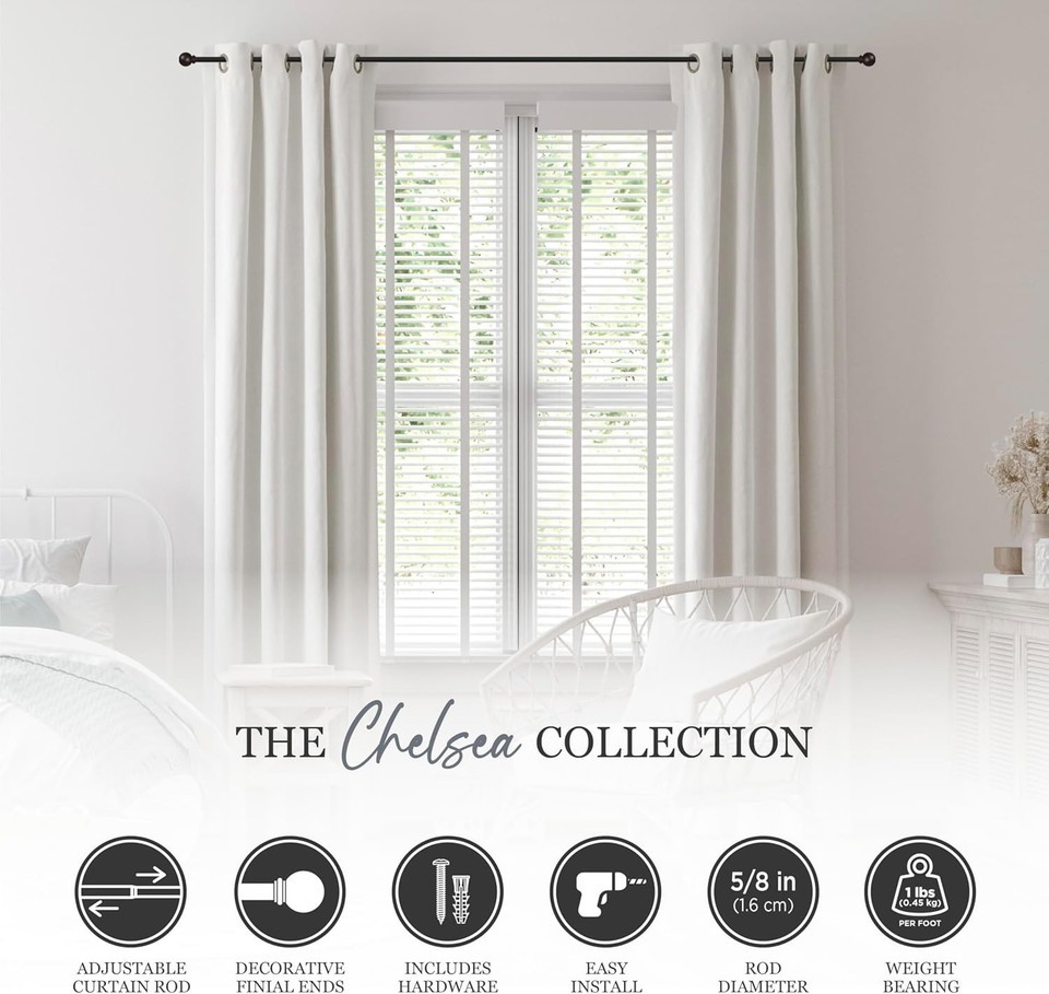 - Chelsea Ball End Window Curtain Rod, Adjustable 28-48 Inch Extendable Rod Set, W