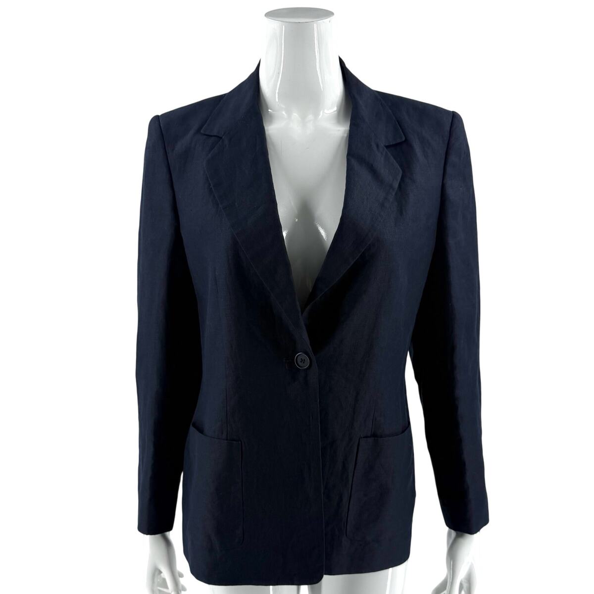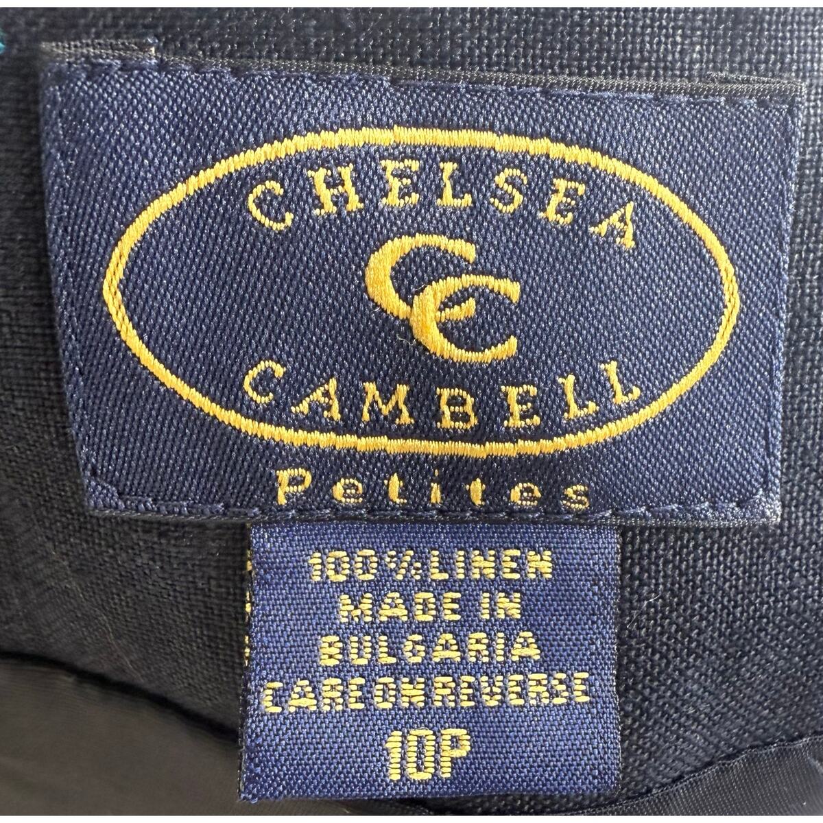 - Chelsea Campbell Womens Blazer Jacket Size 10 Petite Navy Blue Linen Button Up