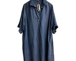 Chelsea Theodore Dress Womens 3X Blue Chambray Tencel Midi Boxy Casual Travel