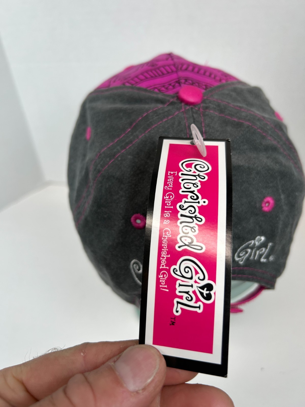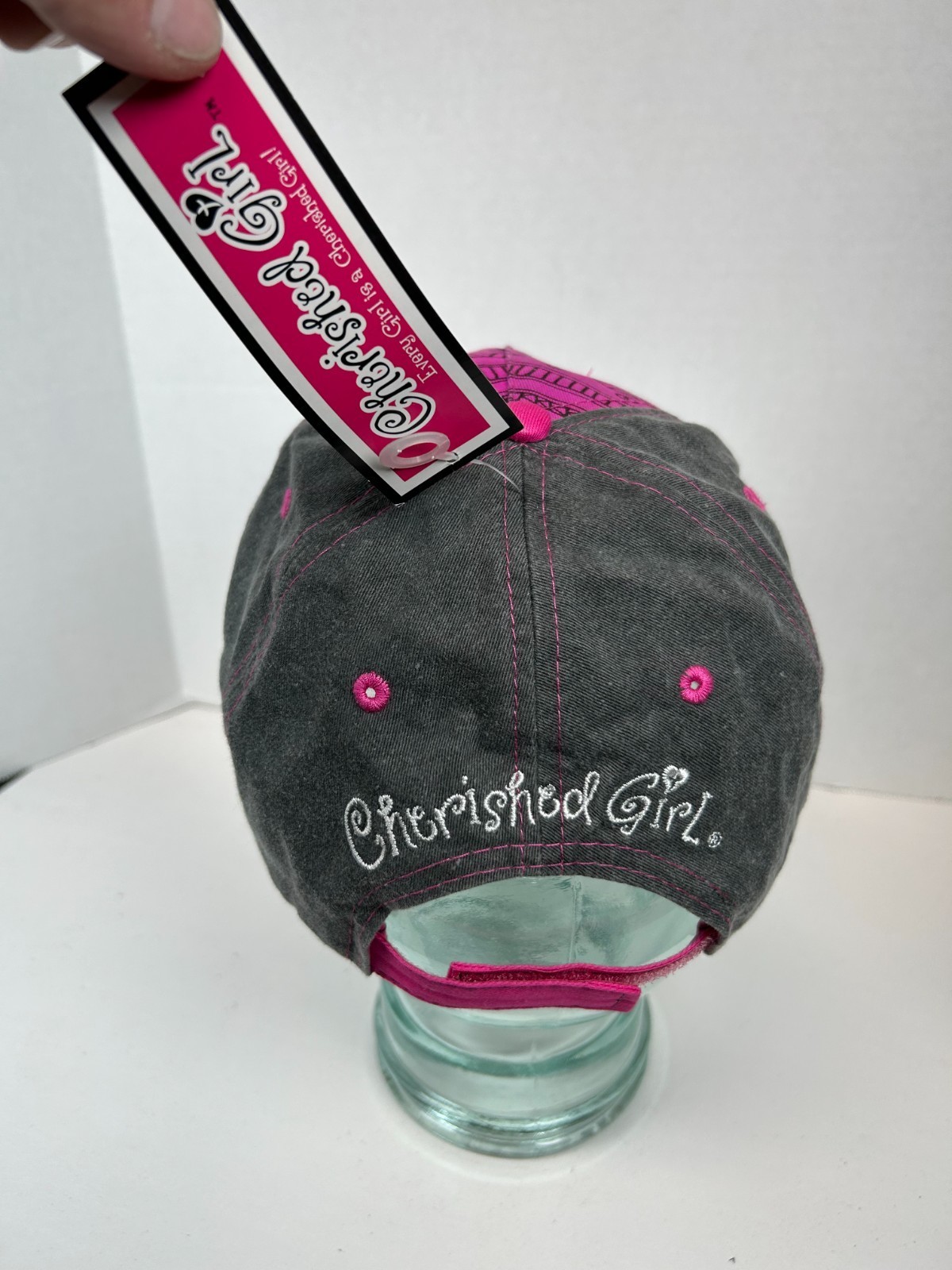 - Cherished Girl Womens Adjustable Strap Back Hat Cap Faith Cross Gray White Pink