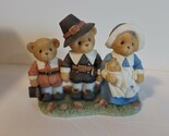 The Cherished Teddies "Faith Of Our Fathers" Figurine features a 5" x 4" x 2" ceramic design. Manufactured in 2000 by Enesco, this handcrafted figurine captures the Thanksgiving theme with a brown color scheme. This collectible piece from the 2000s, made in China, is a heartfelt addition to any holiday and seasonal decor collection.