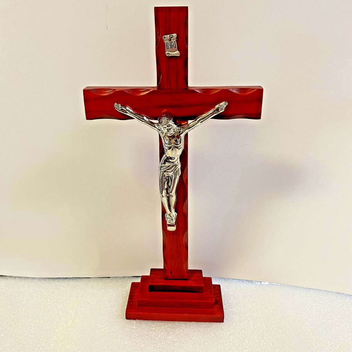 - Cherry Finish Standing Wood 13" Crucifix, New #AB-246
