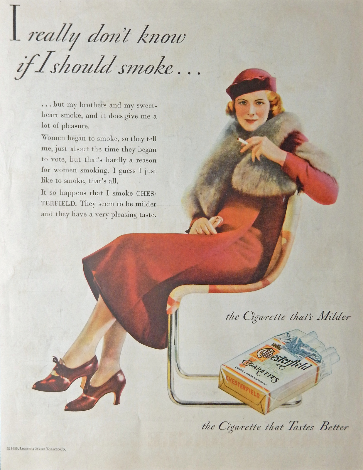 - Chesterfield Cigarette, 1933 original magazine ad. scarce old ad. Print Art 30's