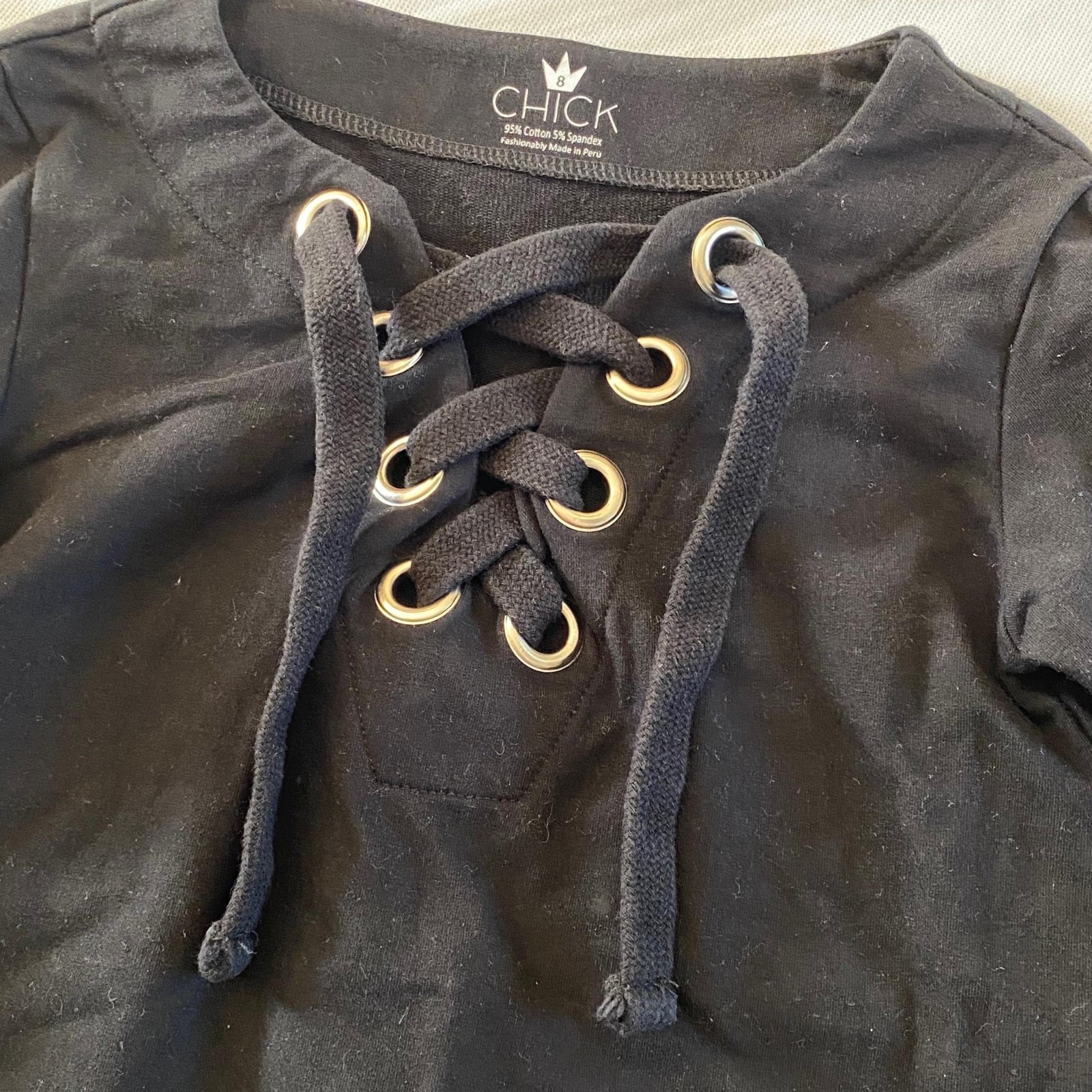 Girls size 6 (marked 8 but runs smaller), lace up front with large grommets long sleeve sweater top, 95% cotton and 5% spandex - like new worn once for photo shoot. From a smoke free and pet free home.