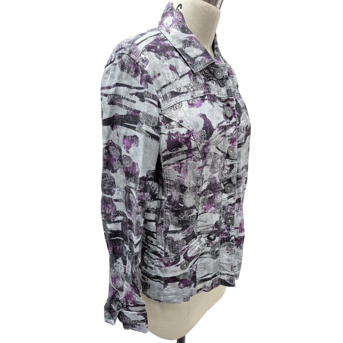 - Chico's 100% Linen Shirt-jack Metallic Silver/Purple Sz 1 S/M NWOT
