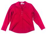 Chico's Red Long Sleeve Blouse Rhinestone Buttons No Iron Size 1 Medium