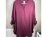 Chico's Shirt Womens Red Burgundy Roll Tab Sleeve Button Up Blouse Size 2 US XSThis item has been cleaned pers used clothing policy.