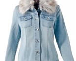 - Chicos Denim Jacket Faux Fur Collar Rhinestone Buttons NWT Size 0