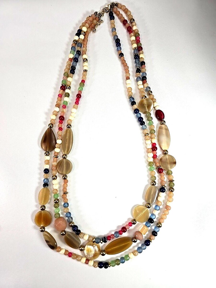 - Chicos Multi Color Mixed Bead Multi Strand Statement Necklace 18” Boho Chic