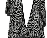 - Chicos Size 2 Black White Stripe Open Draped Cardigan Short Sleeve Sweater