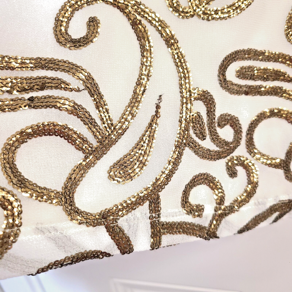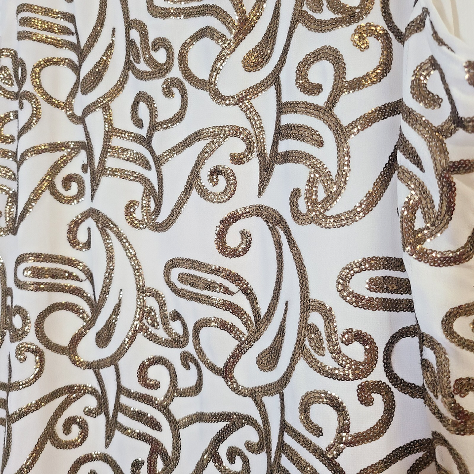 Chicos Size 2 Large Top Tank Cream Chiffon Embellished Paisley Layering