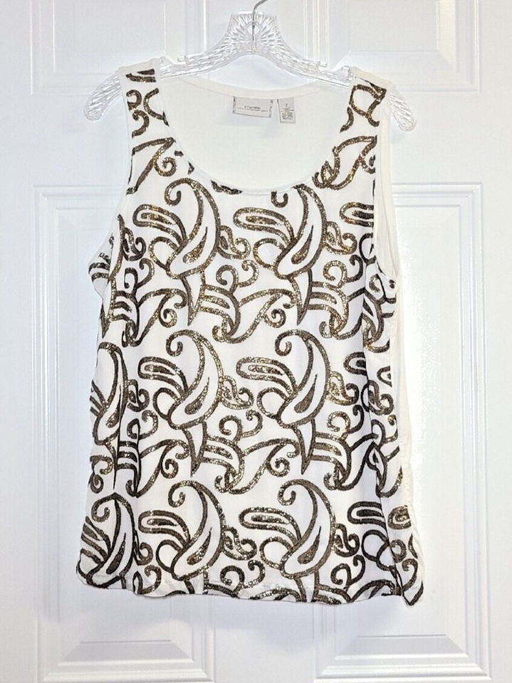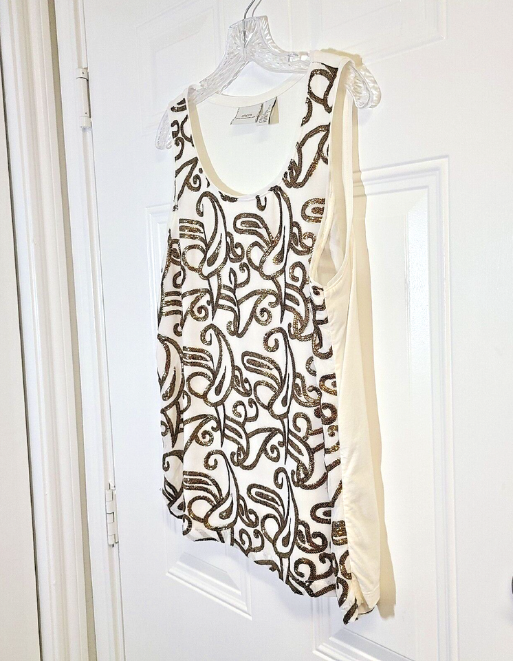 - Chicos Size 2 Large Top Tank Cream Chiffon Embellished Paisley Layering
