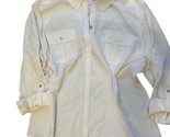 - Chicos Women’s Button Up Collared Ivory Blouse Shirt Top Pockets Roll Tab Sz 2
