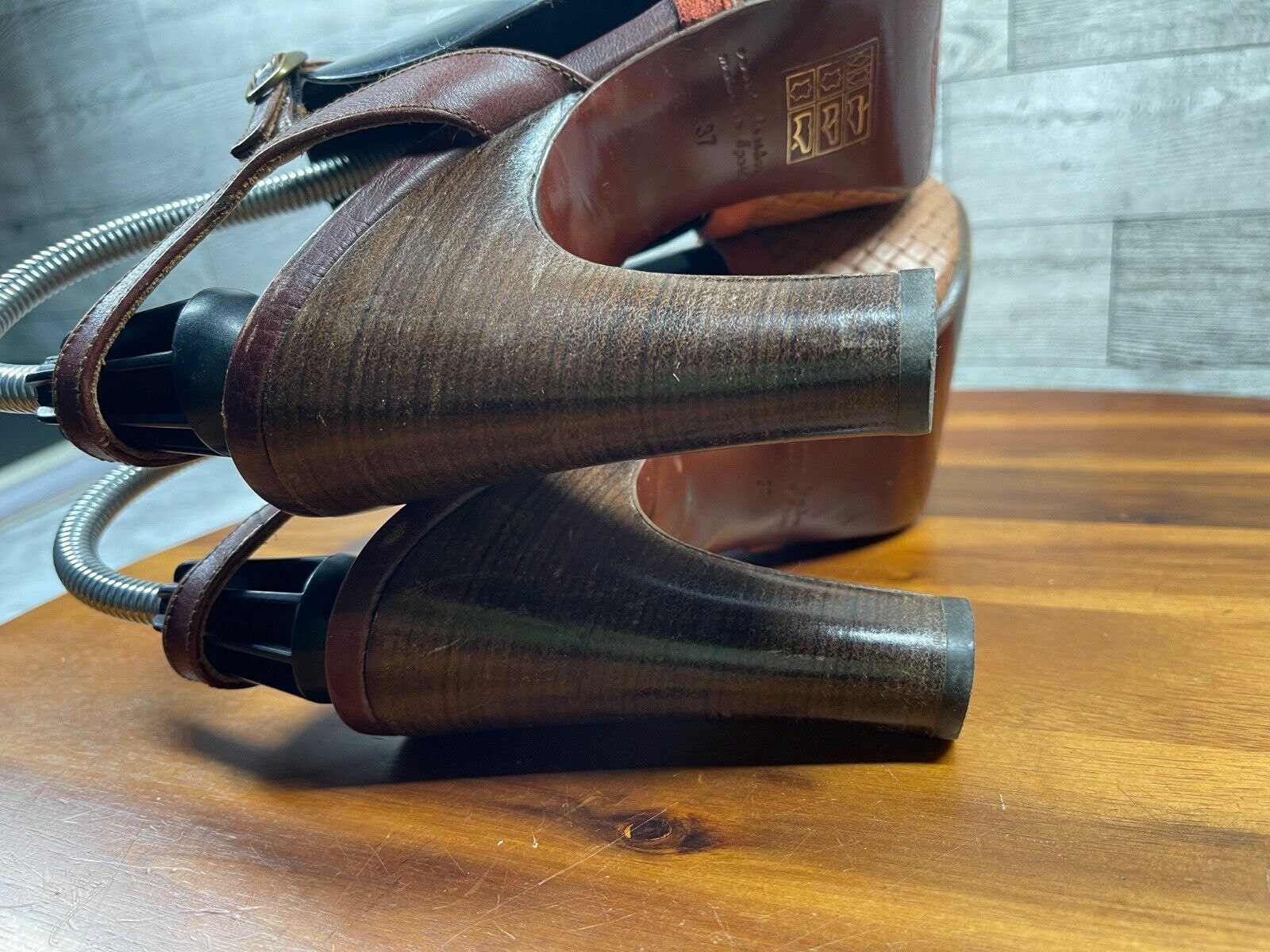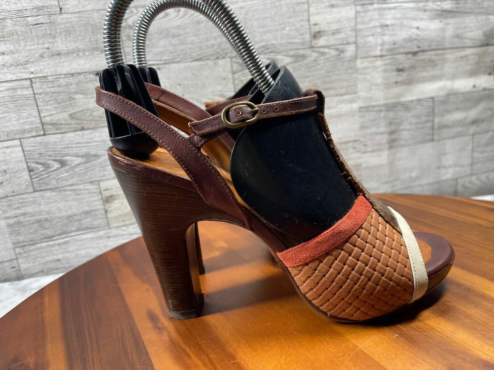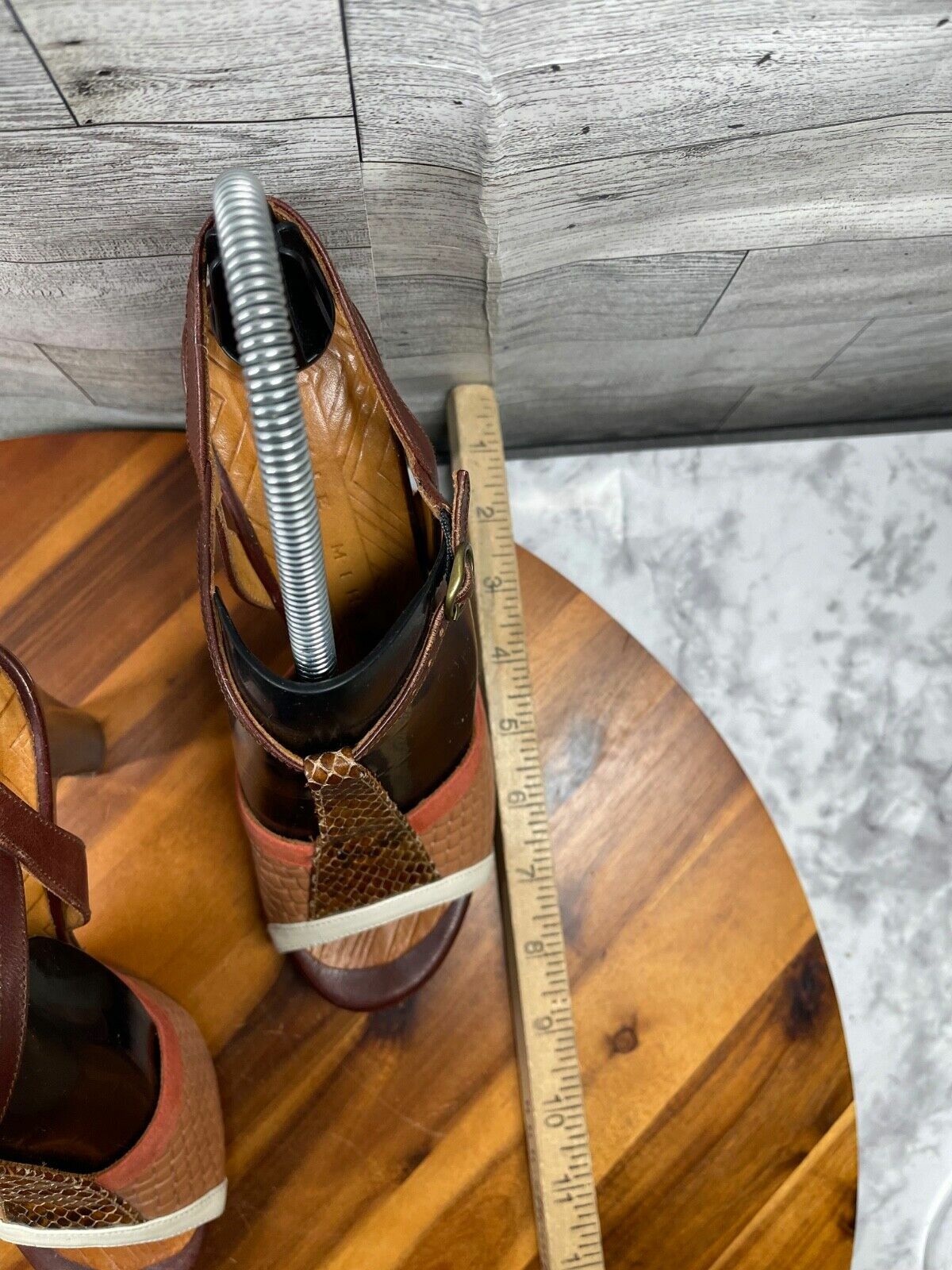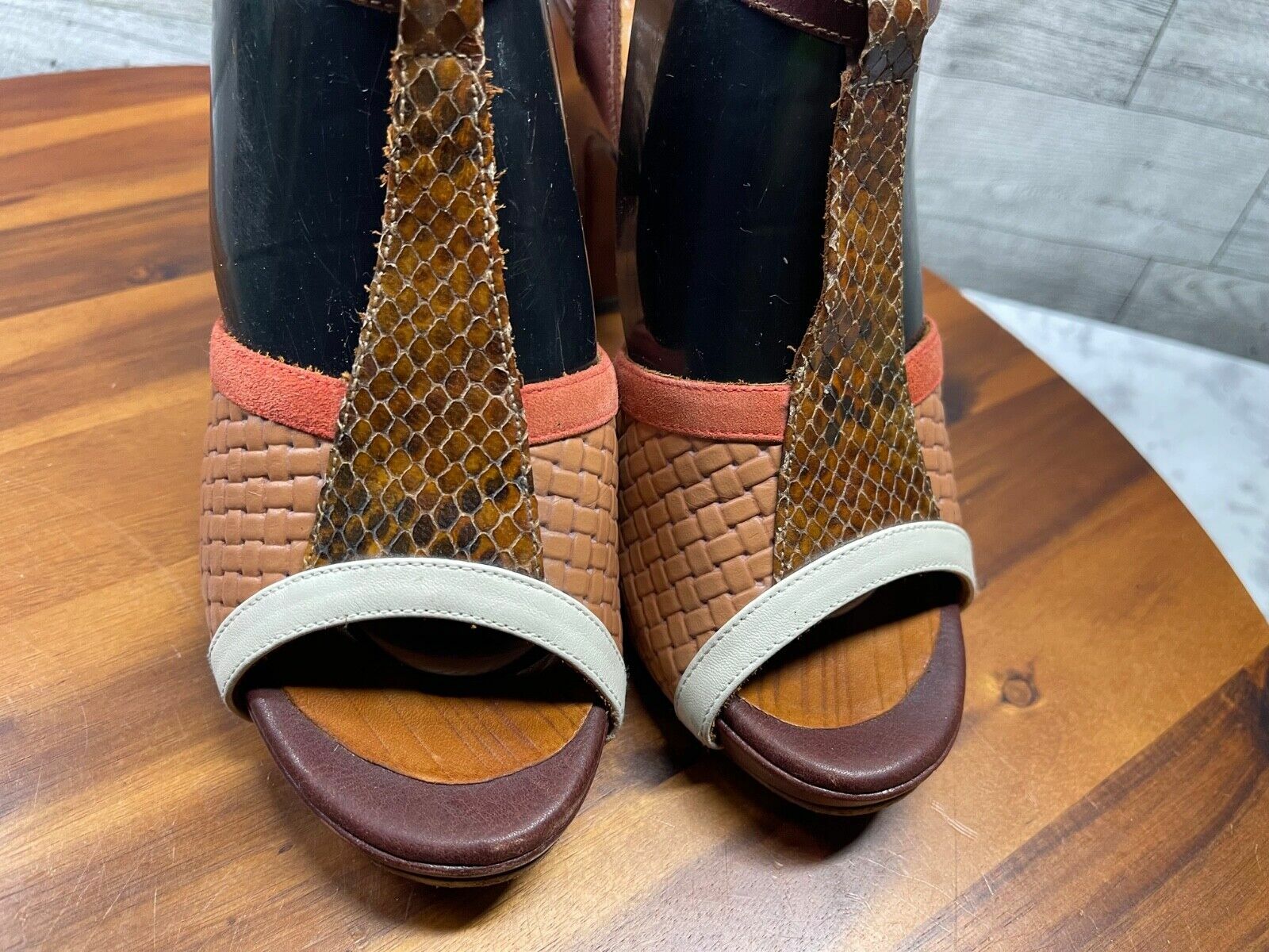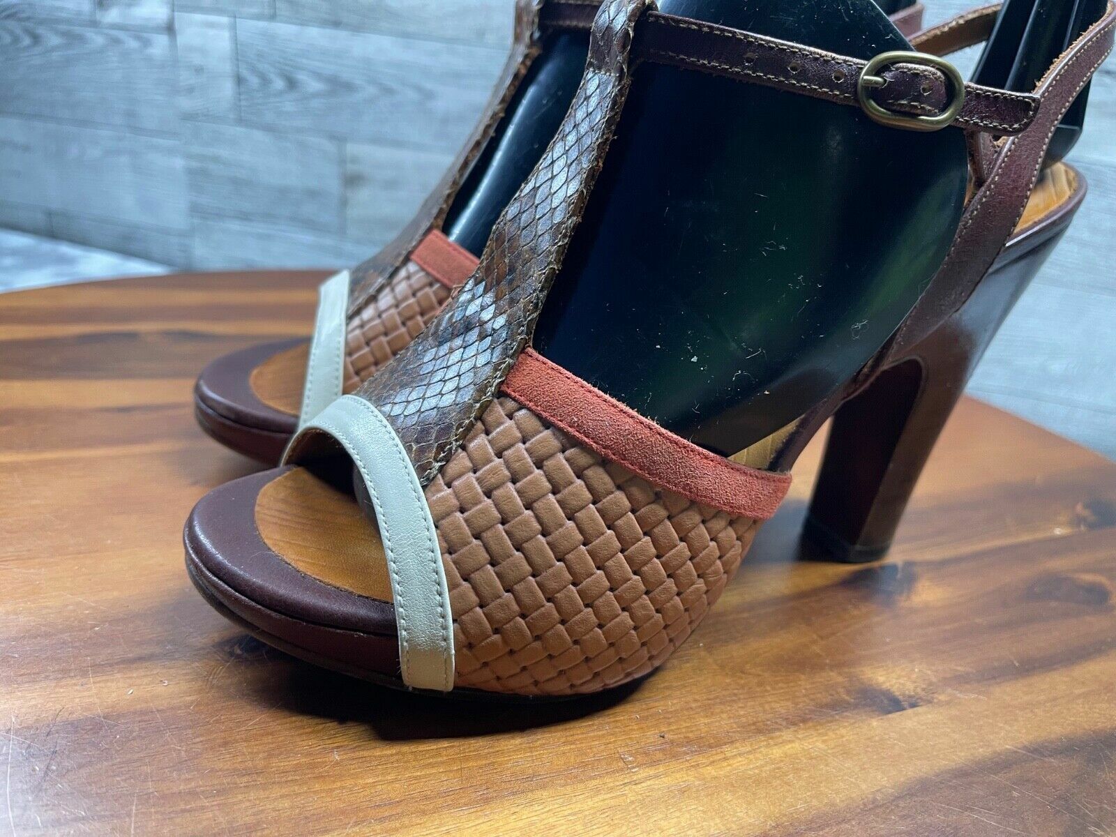 - Chie Mihara Heel Sandals Women 37/ 6.5M Shoes Brown Leather Snake Strappy Peep