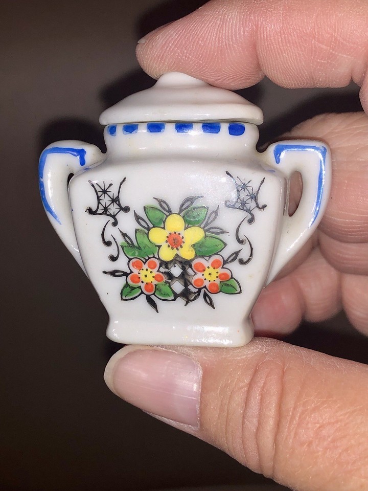 This Childs Miniature Porcelain Tea Set is a charming vintage collectible, featuring a floral design made in Japan during the MidCentury era. With 13 pieces included, this set is perfect for young tea enthusiasts and collectors alike. The whimsical and delicate nature of the set, along with the adorable flower theme, adds a touch of nostalgia and elegance to any tea party or playtime experience. Made in Japan, this tea set showcases the quality craftsmanship and attention to detail characteristic of Japanese porcelain artistry from that time period.