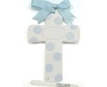 BRAND NEW in the package CHILD TO CHERISH WHITE AND BLUE CERAMIC PERSONALIZABLE BLUE BUBBLE DOT CROSS