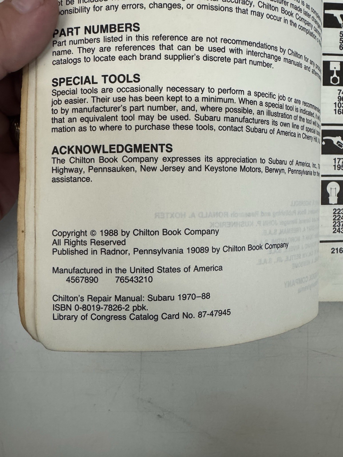 - CHILTON BOOK COMPANY 1970-1988 SUBARU REPAIR MANUAL PART NUMBER 6982 VINTAGE