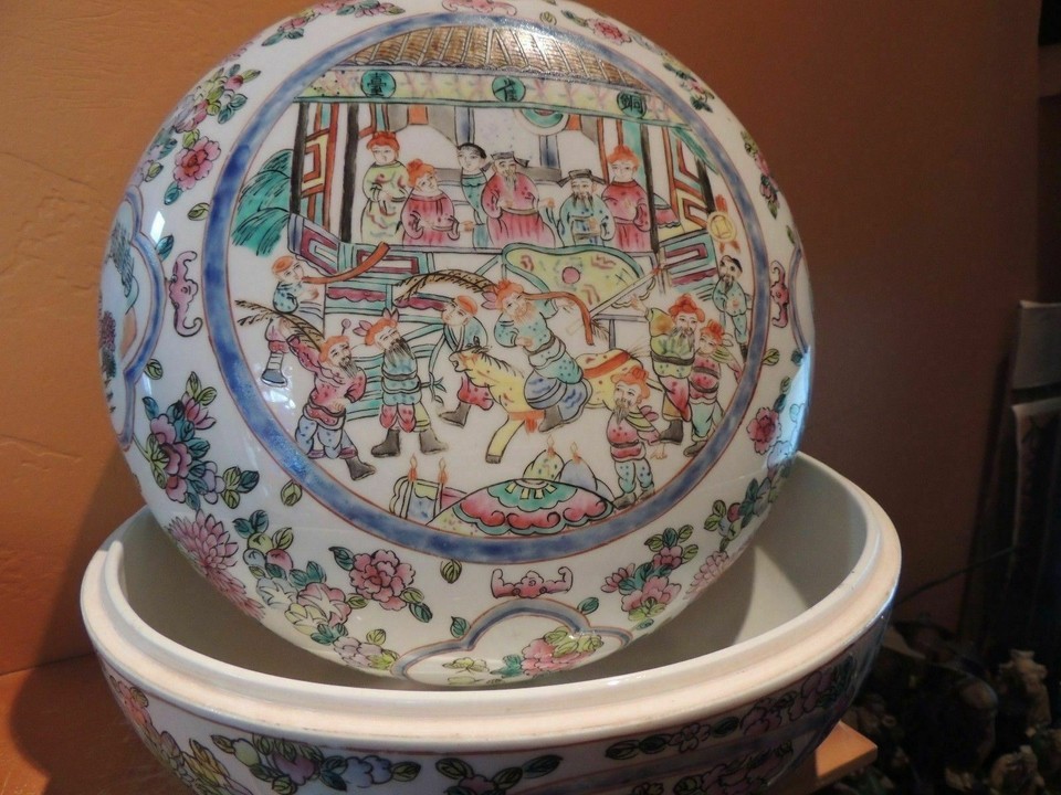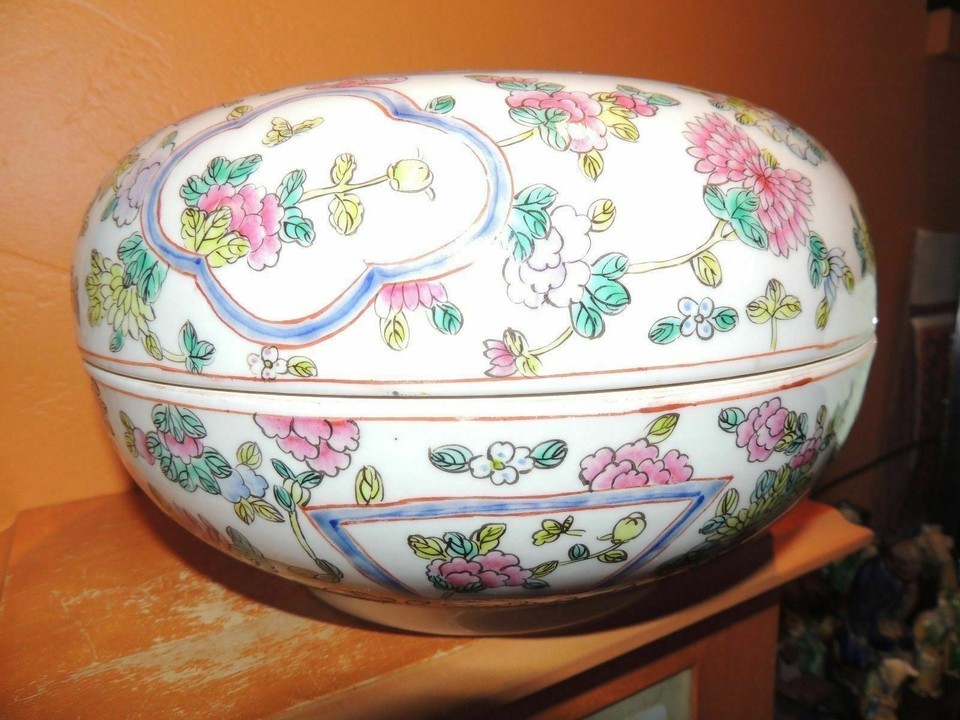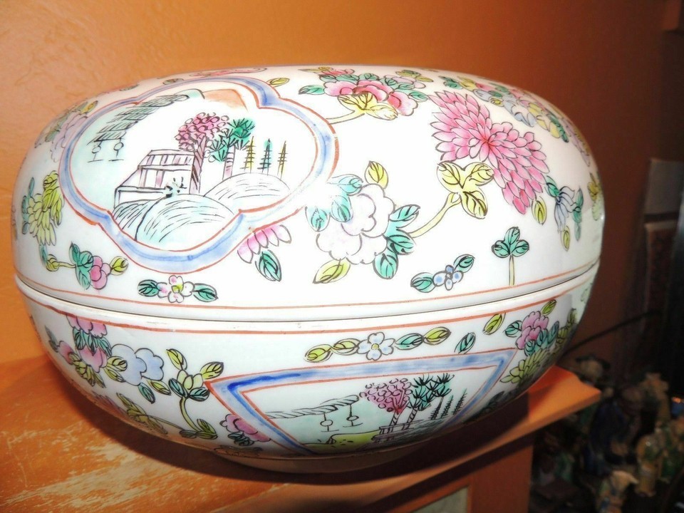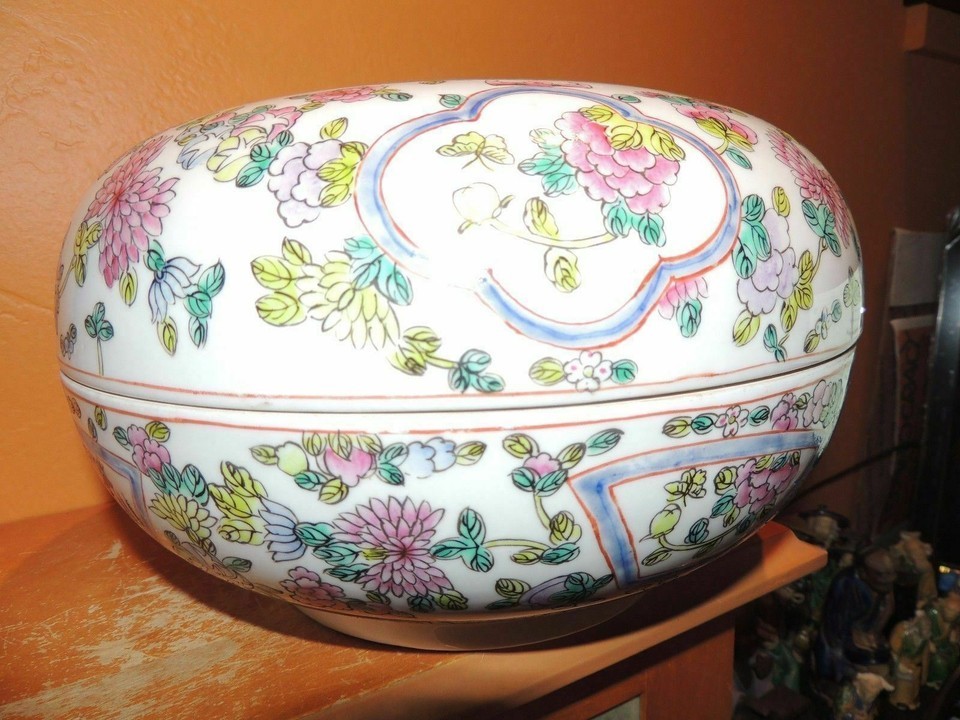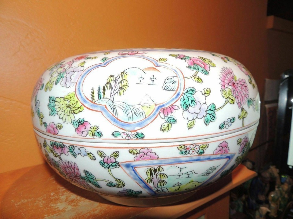 - Chinese 11" Covered Case Famille Rose Republic/ Qing Antique 20th/ 19th Tongzhi?